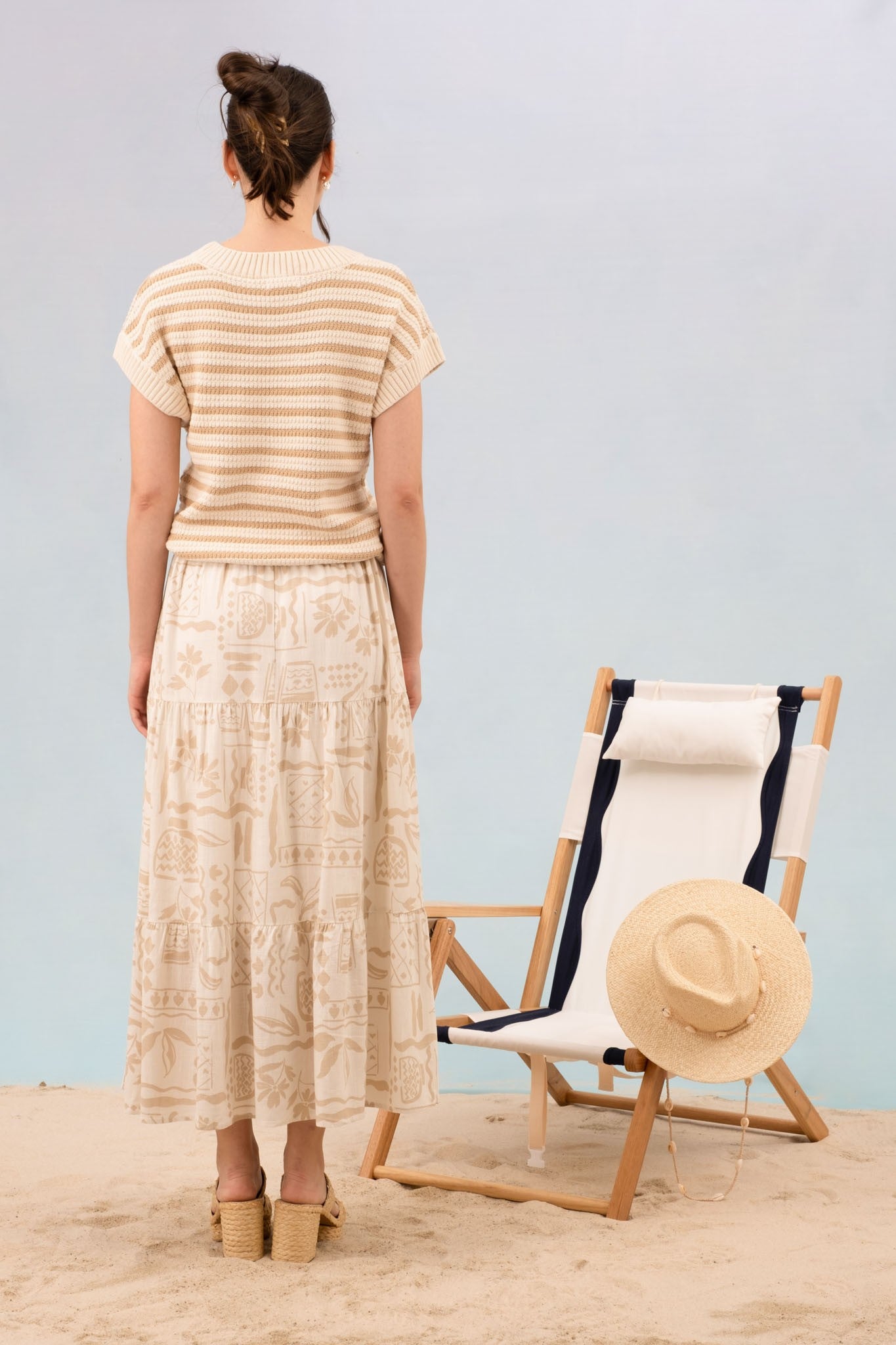 Khaki, Stripe Crew Neck Short Sleeve Knit Puillover